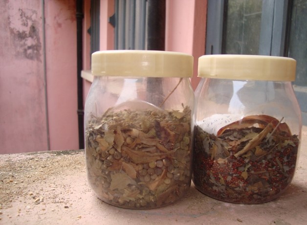 बीज संरक्षण: बीज को किट एवं रोग के संक्रमण से बचाने के लिए यह आवश्यक है कि बीज का संरक्षण सही पद्धति द्वारा किया जाए जिससे बीज की गुणवत्ता भी बरकरार रहे। इसके लिए पहले परिपक्व बीज को चुनकर धूप में अच्छे से सुखा लेते हैं। इसके बाद उस बीज को नीम/करंज तेल में मिलाकर छाया में सूखा लेते हैं। अच्छे से सूखाने के बाद एक साफ बर्तन में नीम, करंज तथा सिन्दवार का पत्ता मिलाकर बीज को संरक्षित कर लिया जाता है। बीज रखते समय बोरे तथा पैकिंग पर फसल का नाम, बीज की प्रजाति तथा बीज संग्रह की दिनांक लिख कर चिपकाना बहुत ही जरूरी होता है।